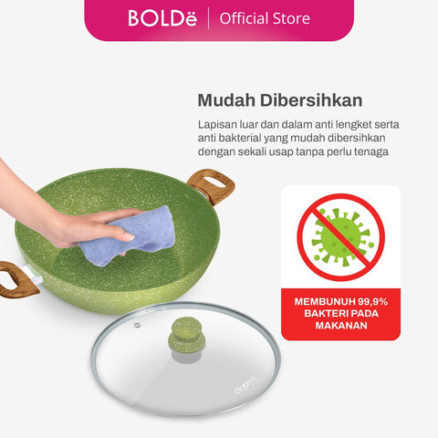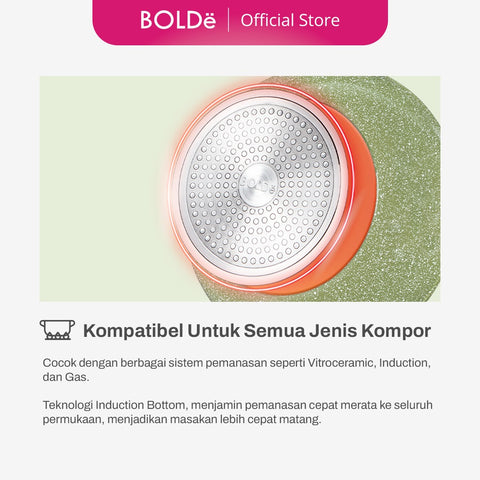 Hadirkan pengalaman memasak yang lebih sehat dan elegan dengan Pan Organic Green. Didesain dengan lapisan granite anti lengket berkualitas tinggi, panci ini memastikan makanan tidak mudah menempel sekaligus mudah dibersihkan. Bagian bawahnya dilengkapi induction bottom yang mampu mendeteksi berbagai jenis kompor—listrik, induksi, maupun gas—serta mendistribusikan panas secara merata untuk hasil masakan yang sempurna.