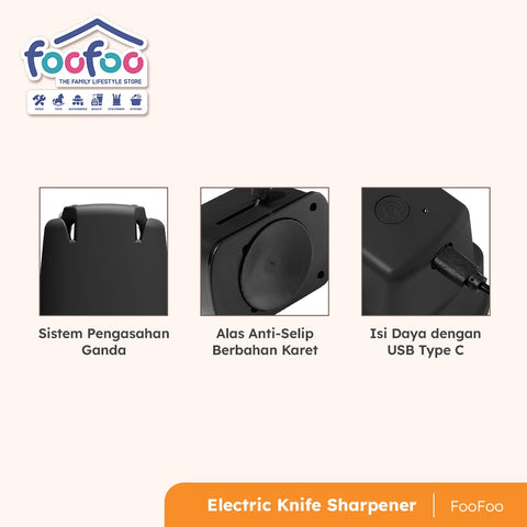 Asah semua jenis pisau jadi super tajam hanya dalam hitungan detik! FooFoo Electric Knife Sharpener hadir dengan desain inovatif yang praktis, ringkas, dan mudah digunakan oleh siapa saja di dapur.
